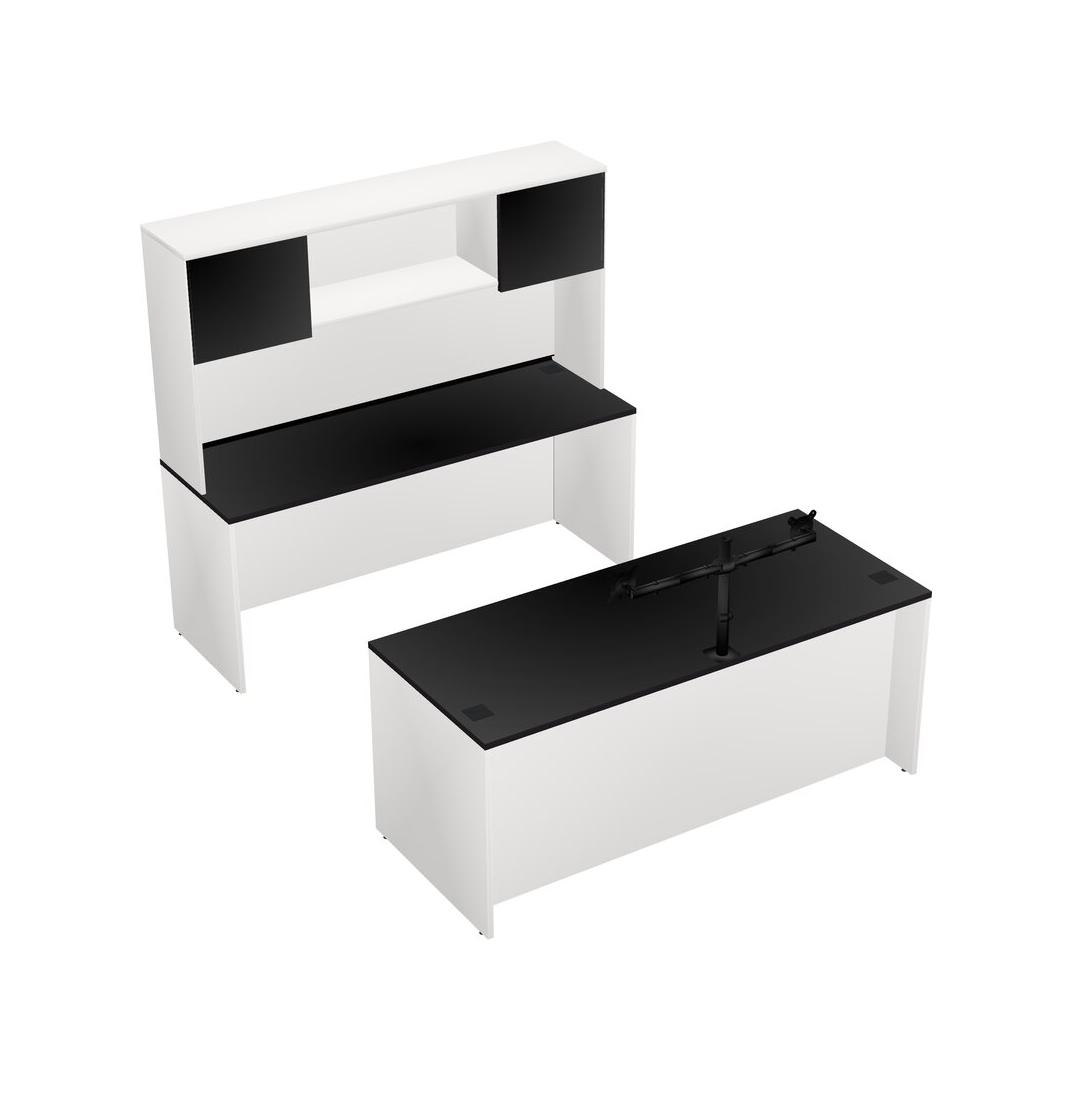Office Parallel Desk Credenza Desk + Hutch + Monitor Arm (double Arms)