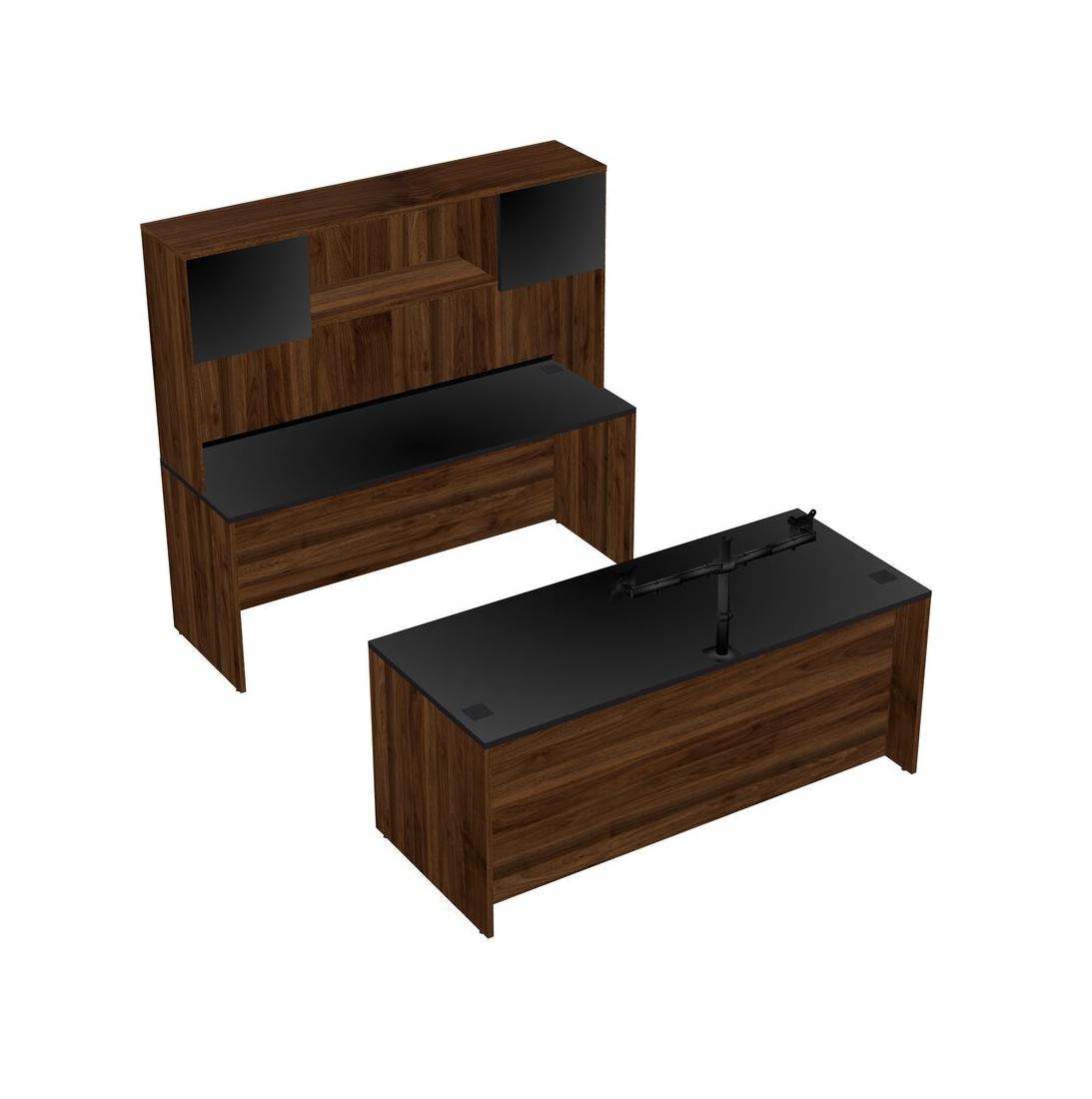 Office Parallel Desk Credenza Desk + Hutch + Monitor Arm (double Arms)