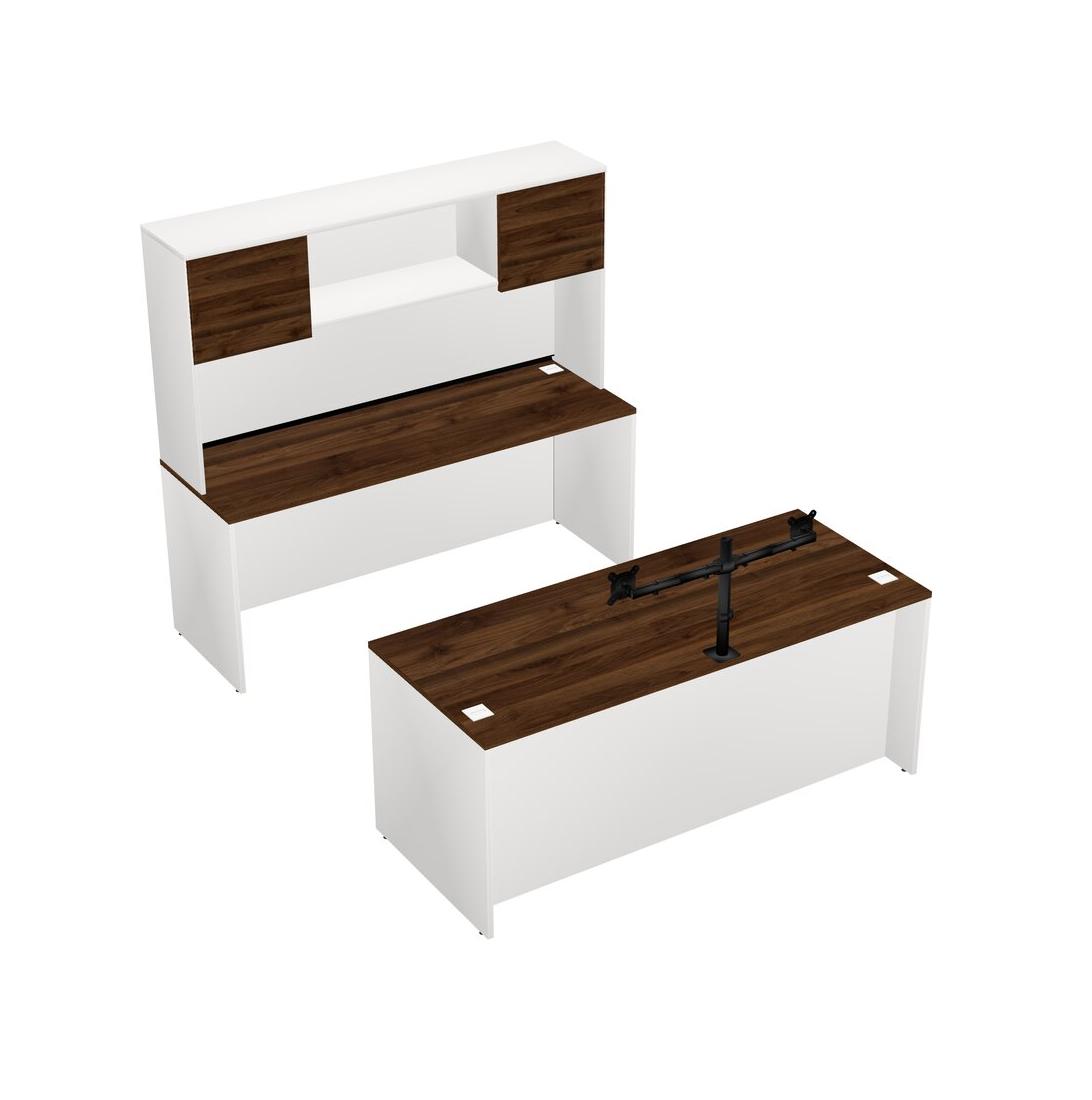 Office Parallel Desk Credenza Desk + Hutch + Monitor Arm (double Arms)
