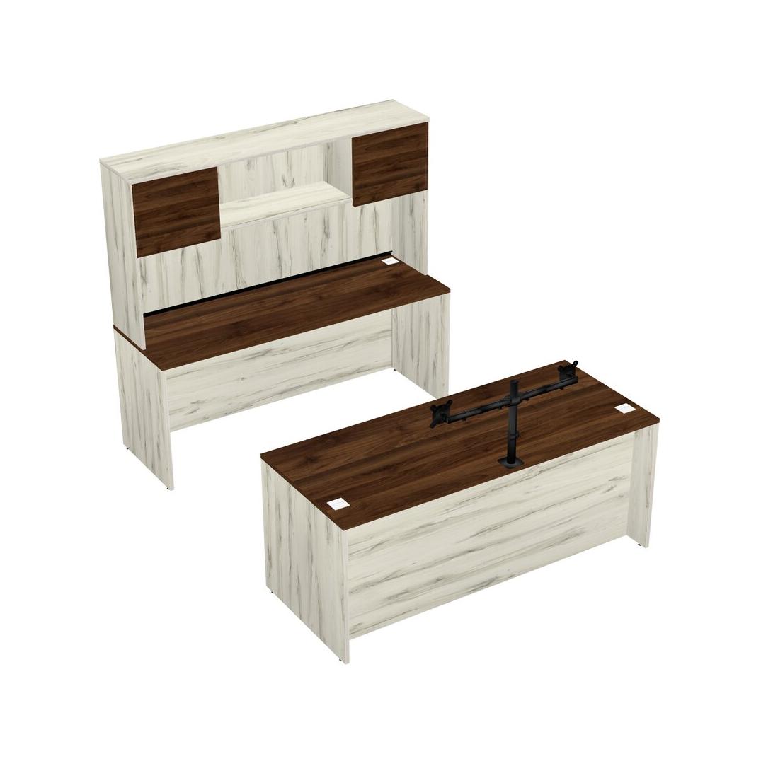 Office Parallel Desk Credenza Desk + Hutch + Monitor Arm (double Arms)