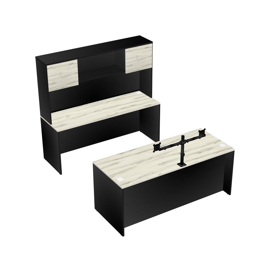 Office Parallel Desk Credenza Desk + Hutch + Monitor Arm (double Arms)