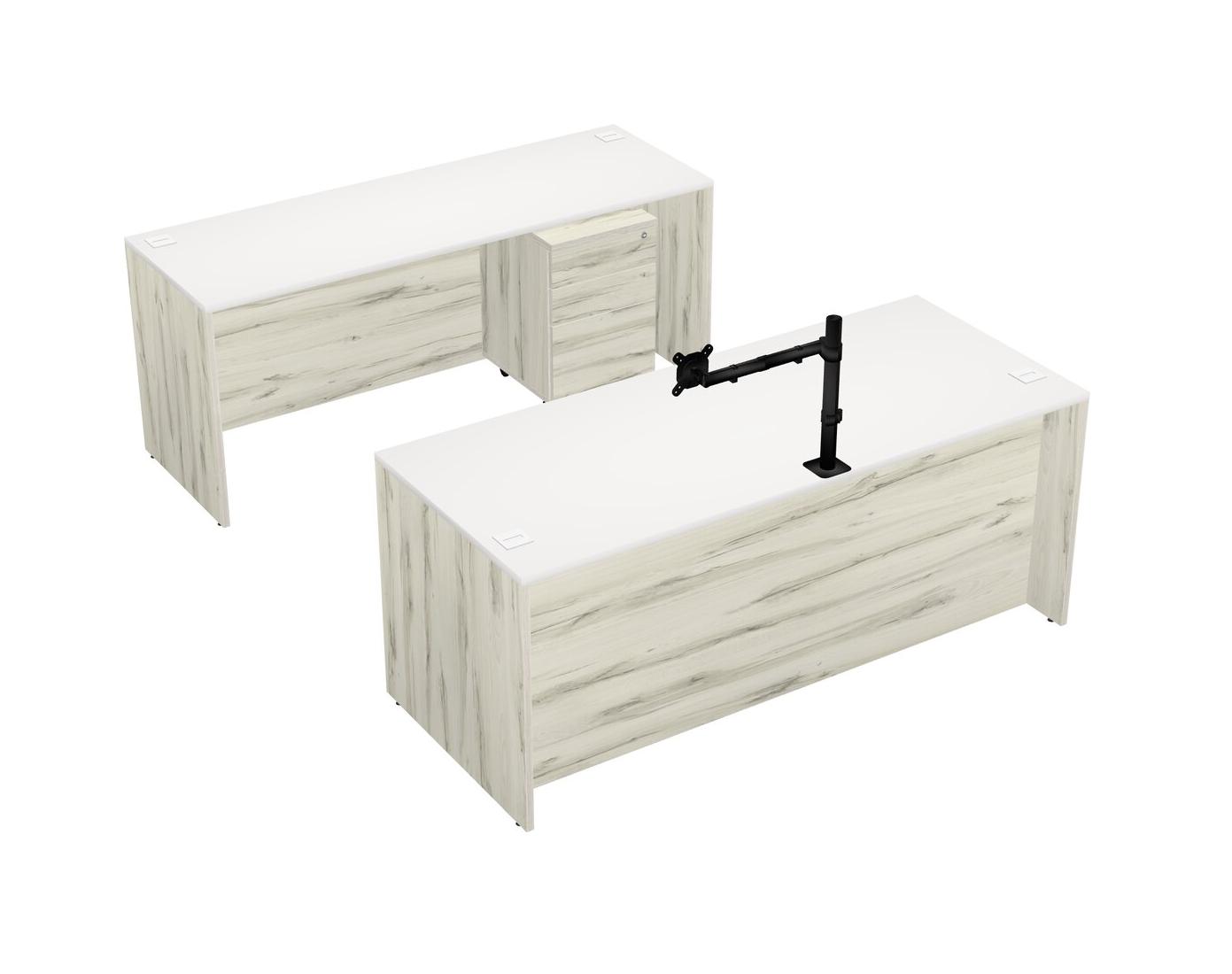 Office Parallel Desk Credenza Desk + Wooden Mobile Drawers + Monitor Arm (single Arm)
