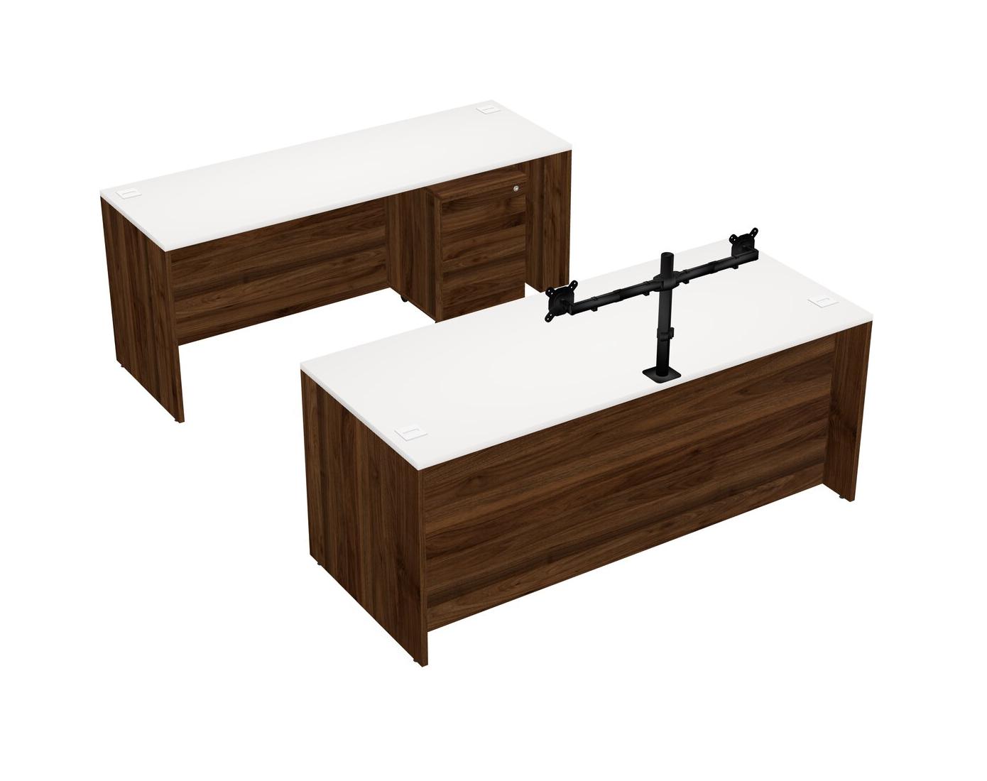 Office Parallel Desk Credenza Desk + Wooden Mobile Drawers + Monitor Arm (double Arms)