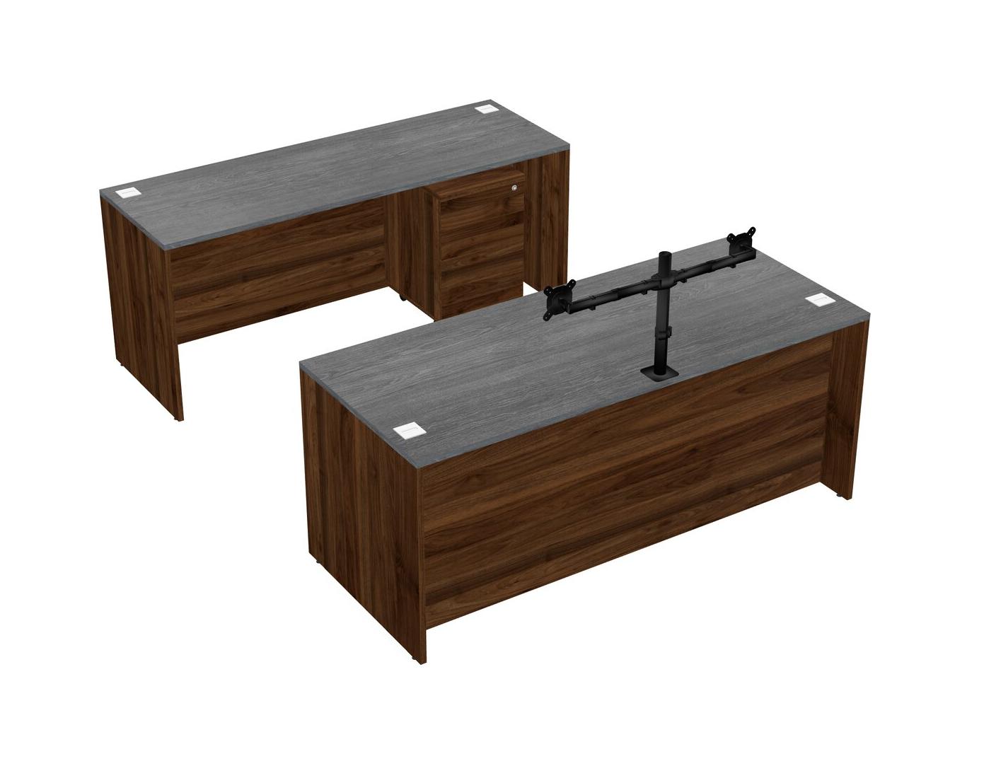 Office Parallel Desk Credenza Desk + Wooden Mobile Drawers + Monitor Arm (double Arms)