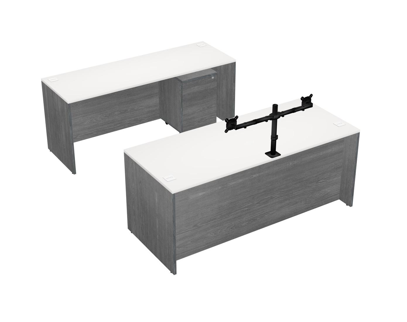 Office Parallel Desk Credenza Desk + Wooden Mobile Drawers + Monitor Arm (double Arms)