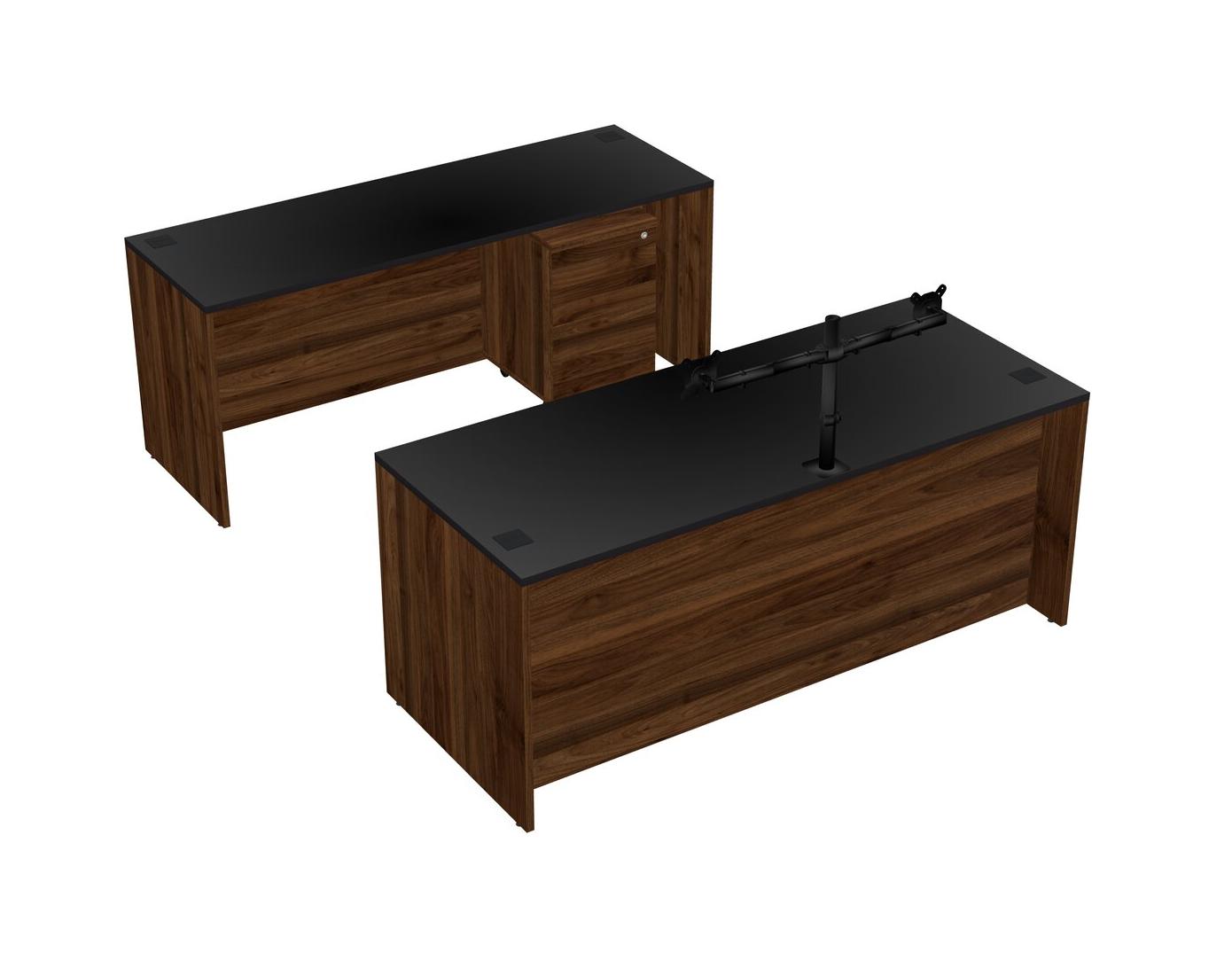 Office Parallel Desk Credenza Desk + Wooden Mobile Drawers + Monitor Arm (double Arms)