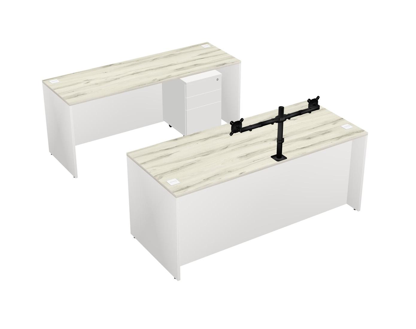 Office Parallel Desk Credenza Desk + Wooden Mobile Drawers + Monitor Arm (double Arms)