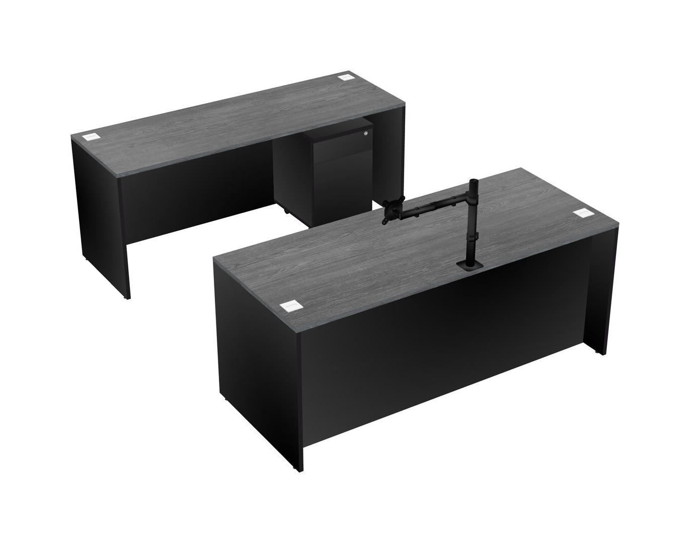 Office Parallel Desk Credenza Desk + Wooden Mobile Drawers + Monitor Arm (single Arm)