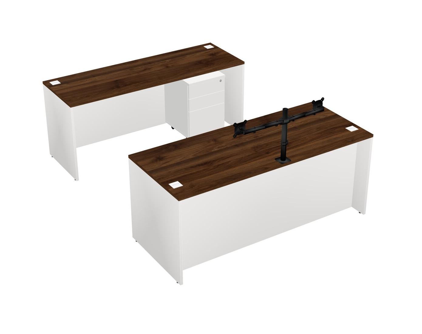 Office Parallel Desk Credenza Desk + Wooden Mobile Drawers + Monitor Arm (double Arms)