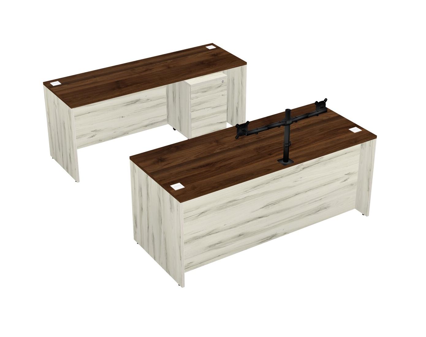 Office Parallel Desk Credenza Desk + Wooden Mobile Drawers + Monitor Arm (double Arms)