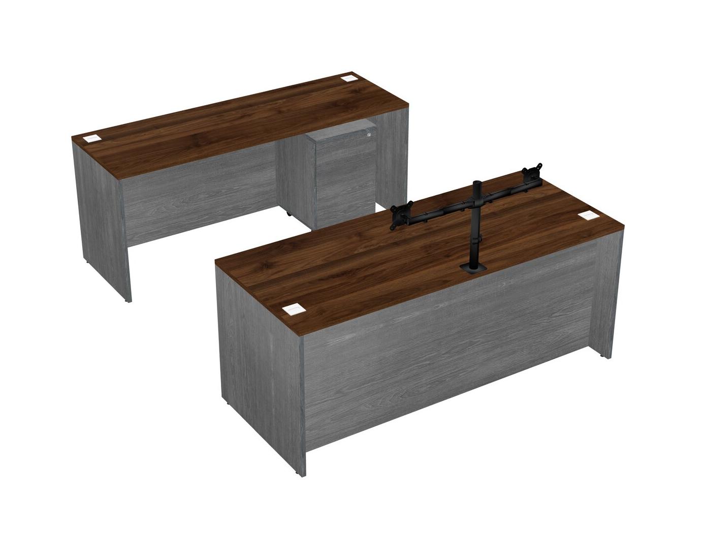Office Parallel Desk Credenza Desk + Wooden Mobile Drawers + Monitor Arm (double Arms)