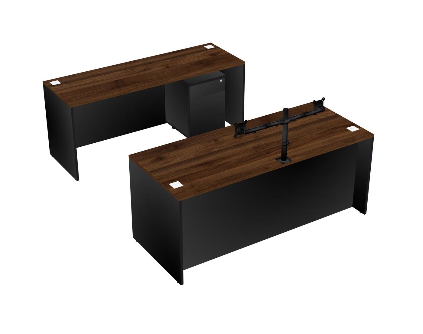 Office Parallel Desk Credenza Desk + Wooden Mobile Drawers + Monitor Arm (double Arms)