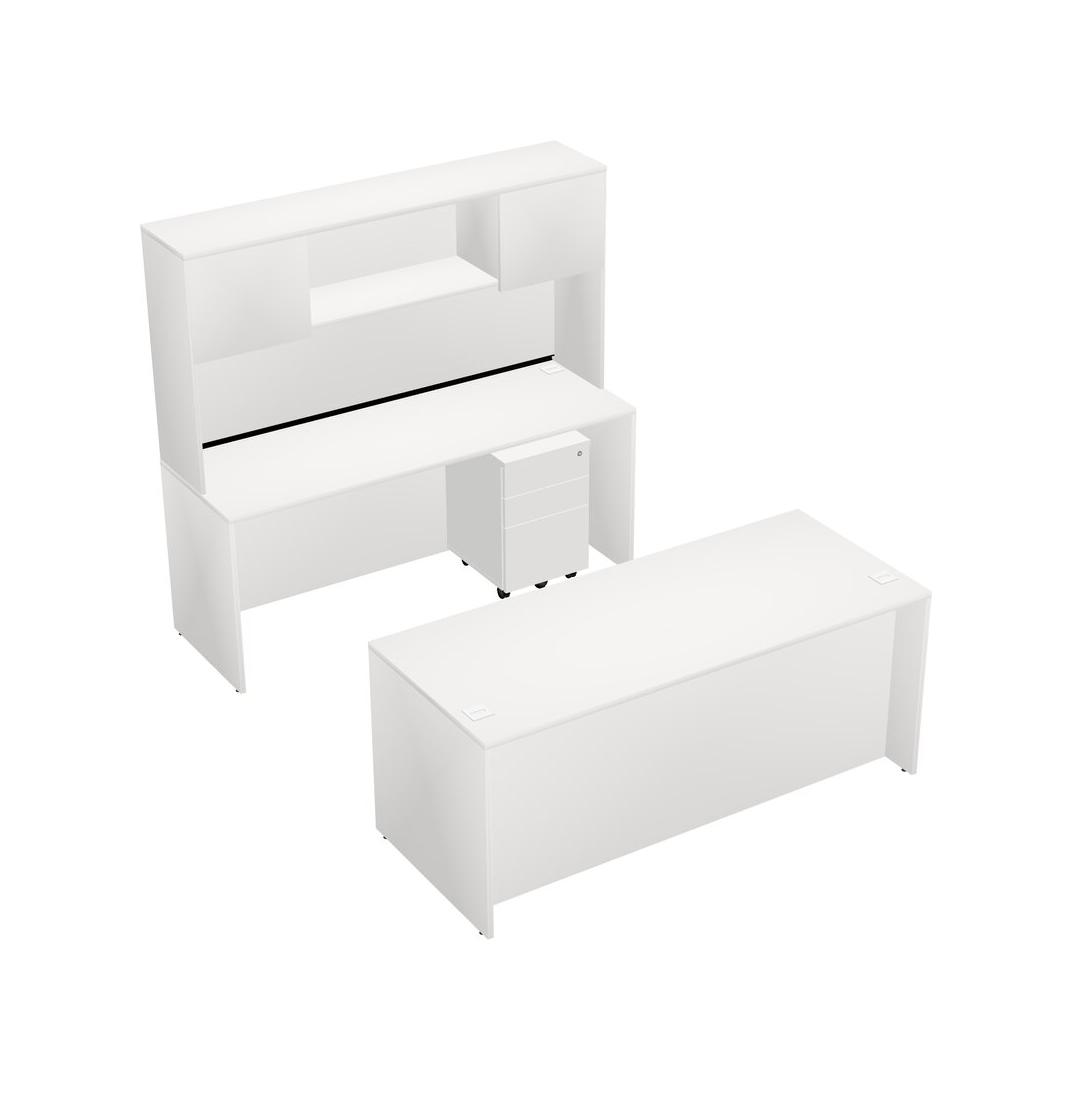 Office Parallel Desk Credenza Desk + Wooden Mobile Drawers + Hutch