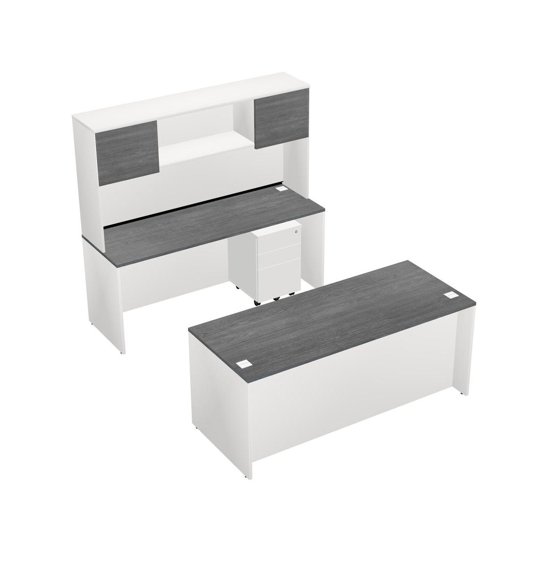 Office Parallel Desk Credenza Desk + Wooden Mobile Drawers + Hutch