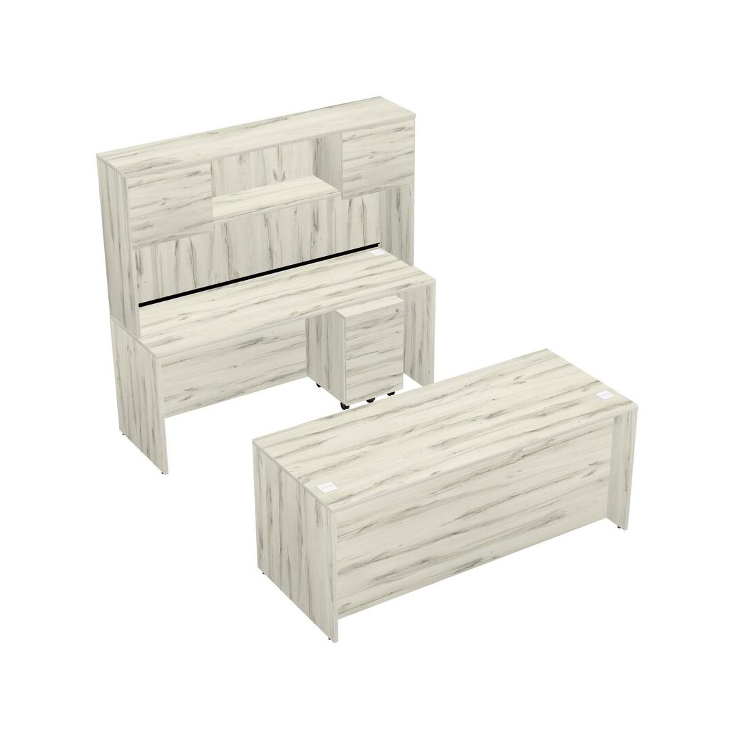 Office Parallel Desk Credenza Desk + Wooden Mobile Drawers + Hutch