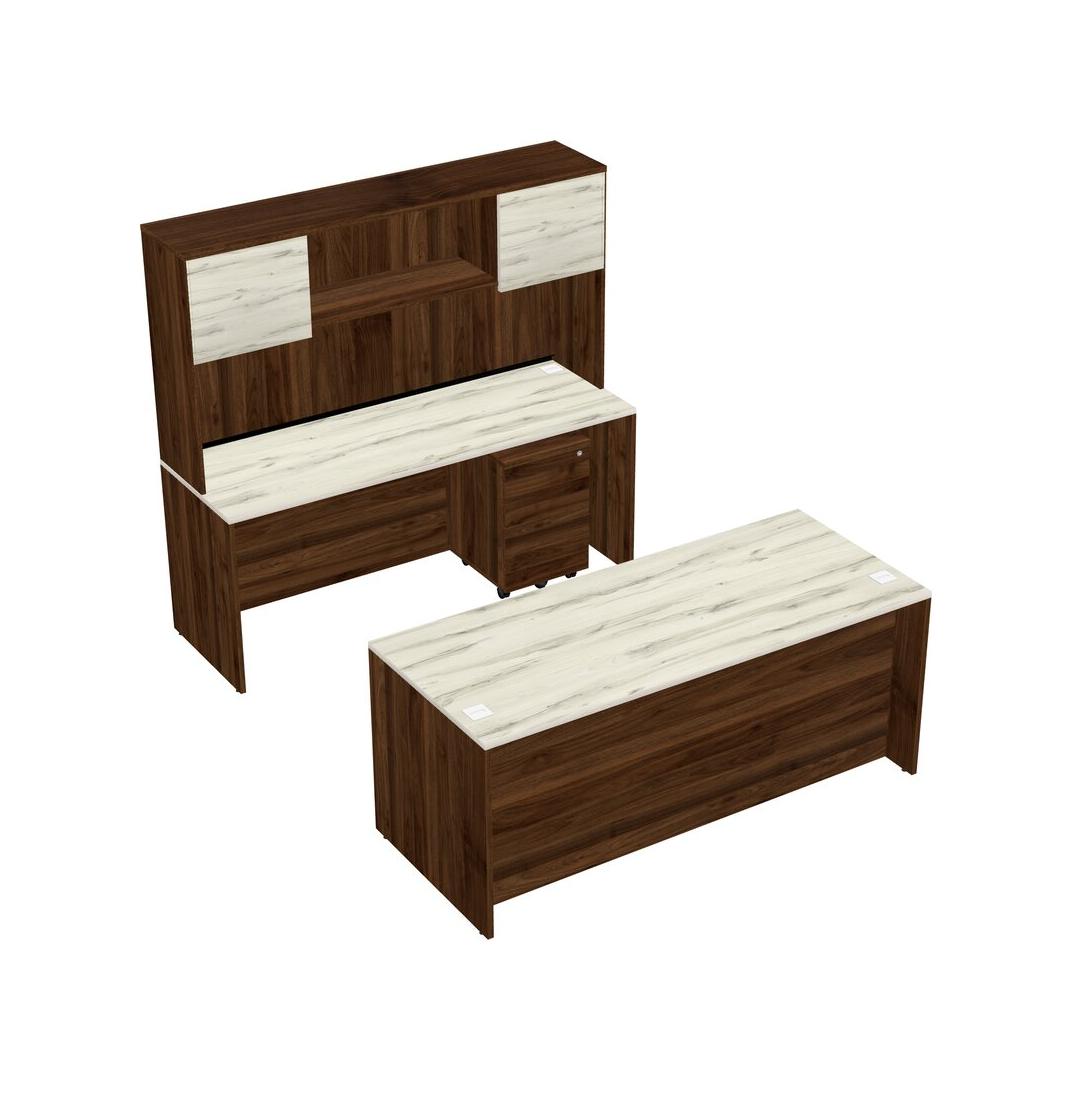 Office Parallel Desk Credenza Desk + Wooden Mobile Drawers + Hutch