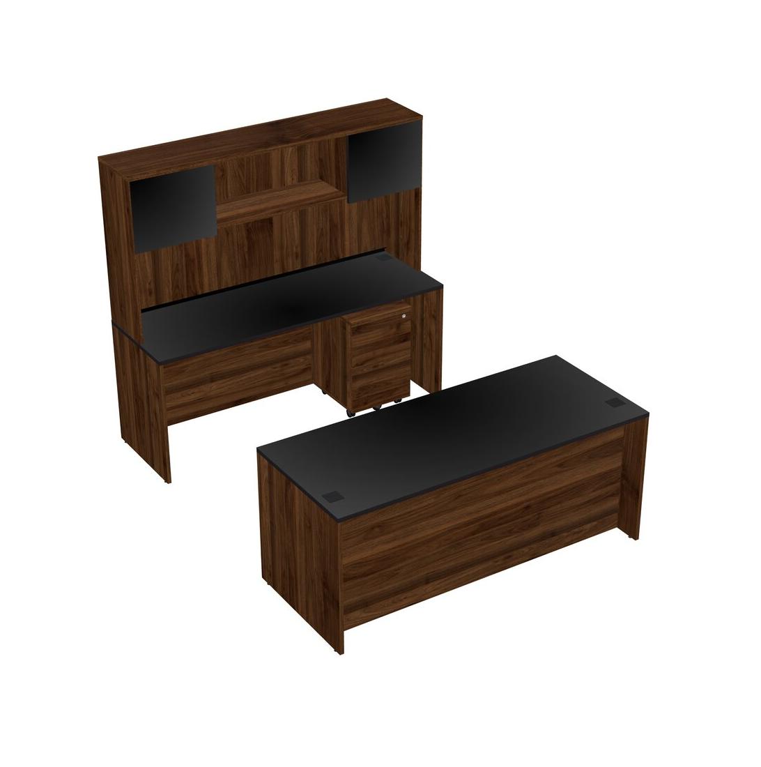 Office Parallel Desk Credenza Desk + Wooden Mobile Drawers + Hutch