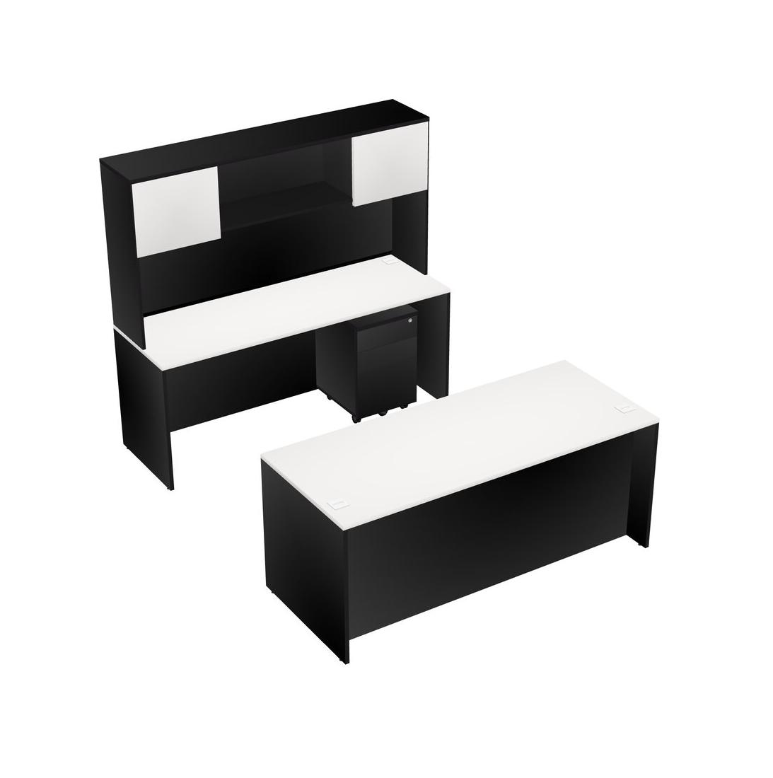 Office Parallel Desk Credenza Desk + Wooden Mobile Drawers + Hutch