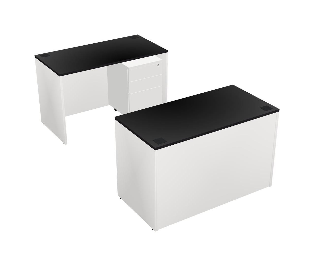 Office Parallel Desk Credenza Desk + Wooden Mobile Drawers
