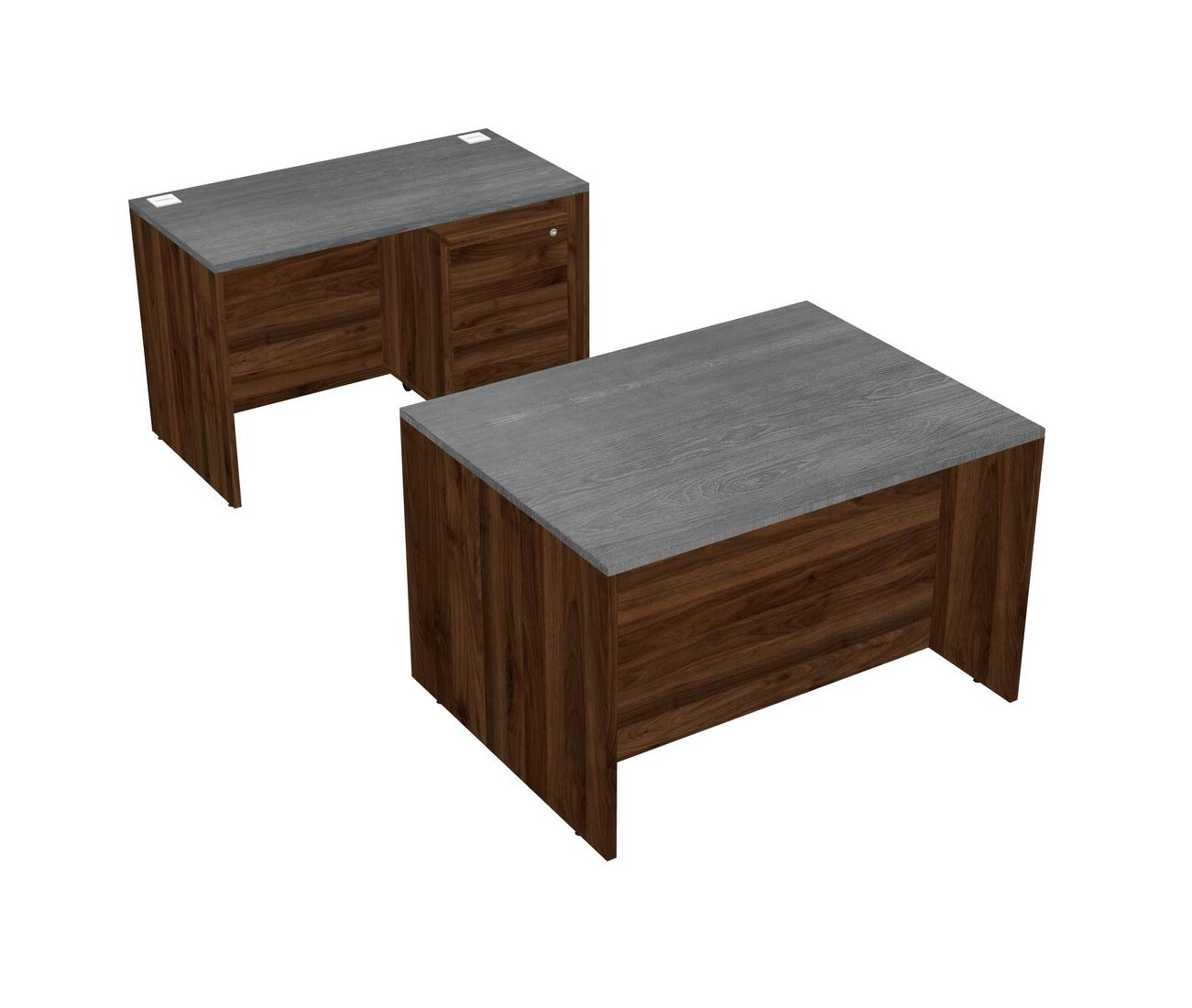 Office Parallel Desk Credenza Desk + Wooden Mobile Drawers