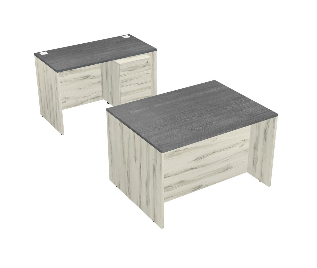 Office Parallel Desk Credenza Desk + Wooden Mobile Drawers