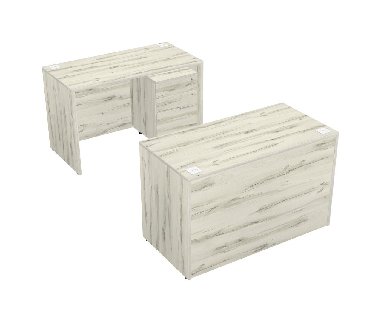 Office Parallel Desk Credenza Desk + Wooden Mobile Drawers