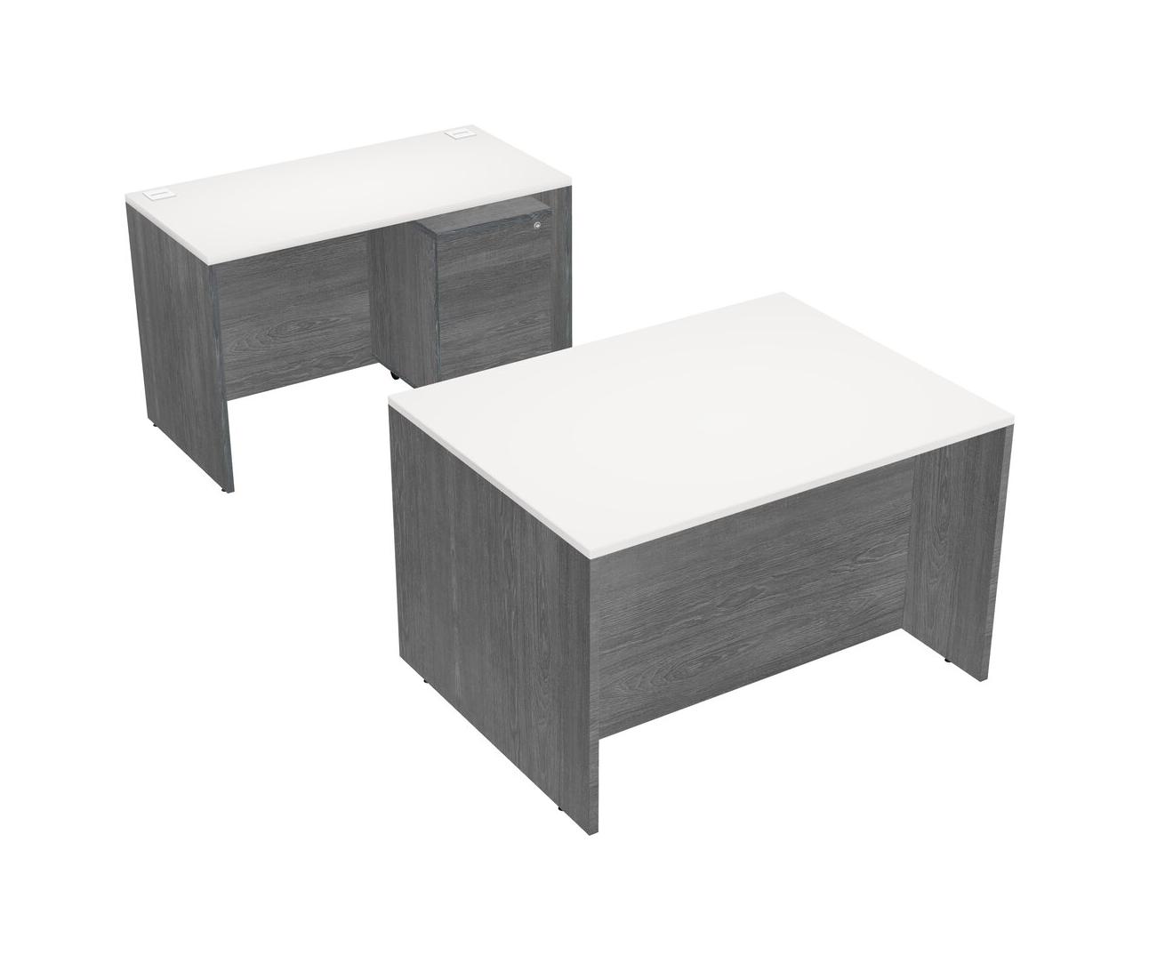 Office Parallel Desk Credenza Desk + Wooden Mobile Drawers