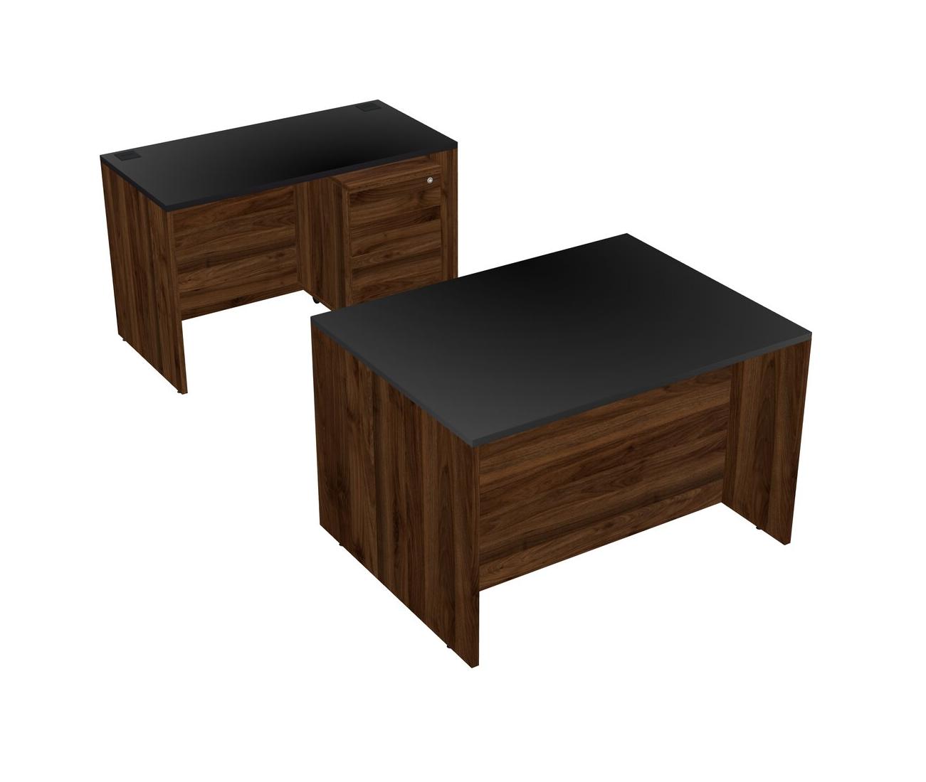 Office Parallel Desk Credenza Desk + Wooden Mobile Drawers