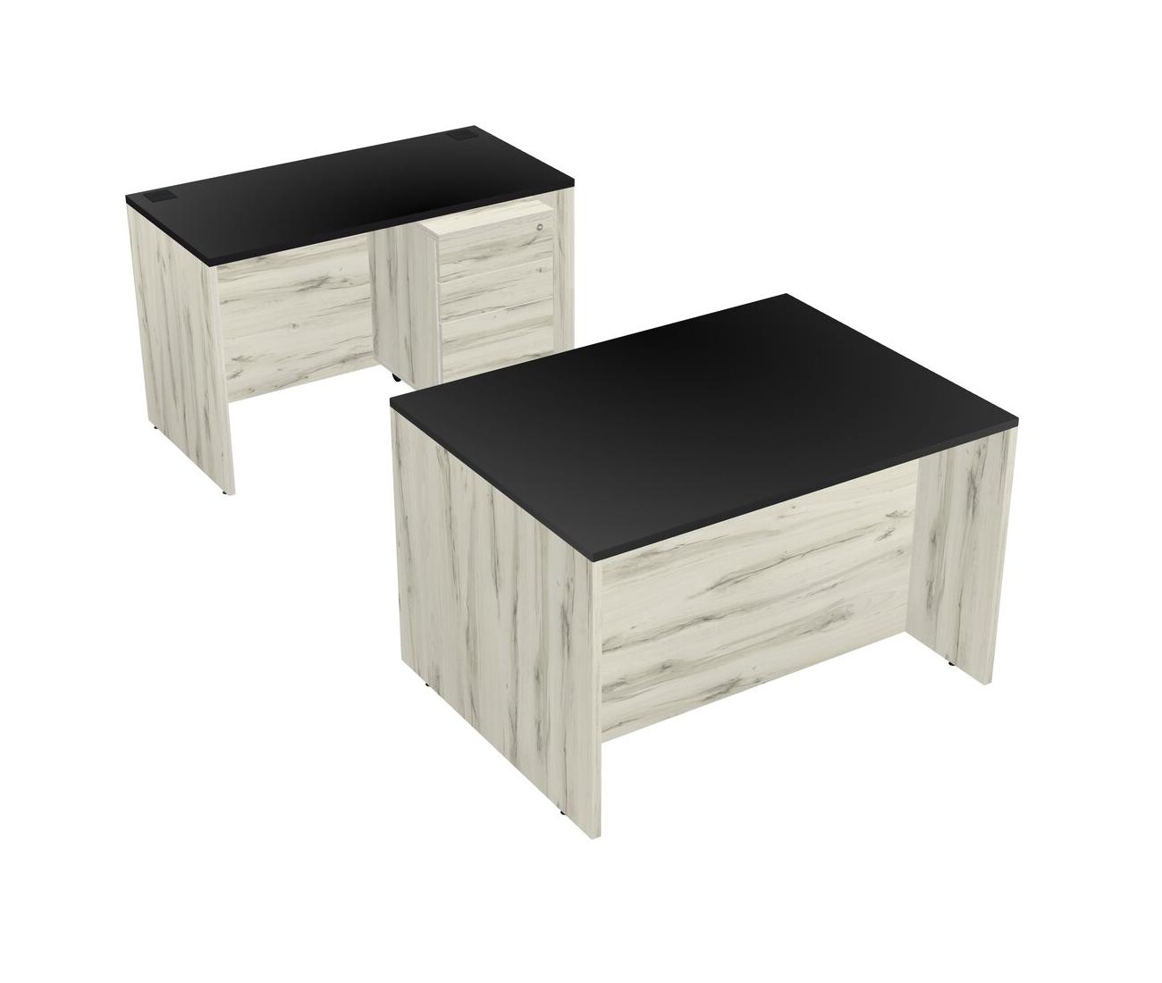 Office Parallel Desk Credenza Desk + Wooden Mobile Drawers