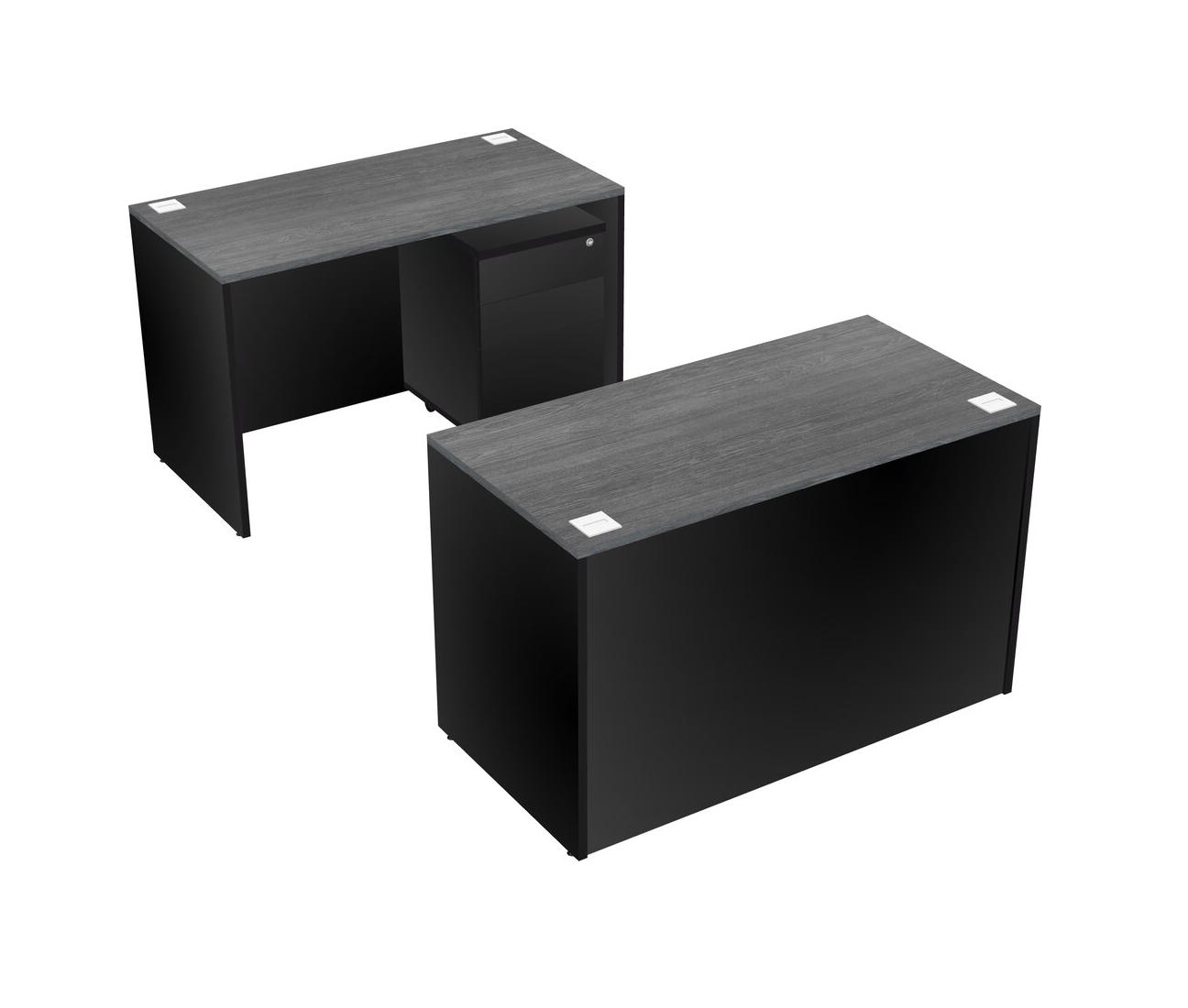 Office Parallel Desk Credenza Desk + Wooden Mobile Drawers