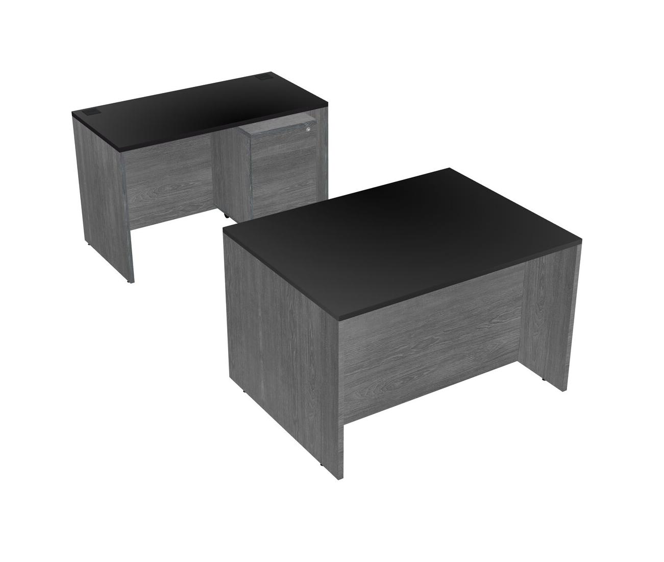 Office Parallel Desk Credenza Desk + Wooden Mobile Drawers