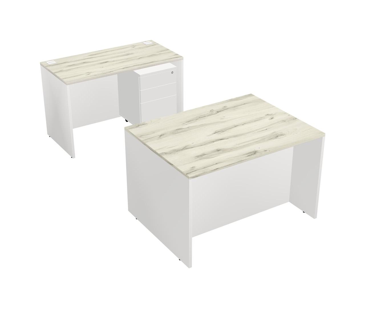 Office Parallel Desk Credenza Desk + Wooden Mobile Drawers