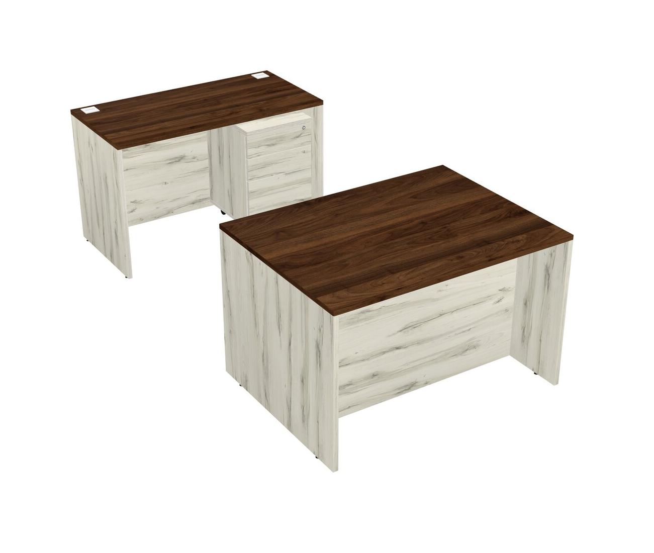 Office Parallel Desk Credenza Desk + Wooden Mobile Drawers