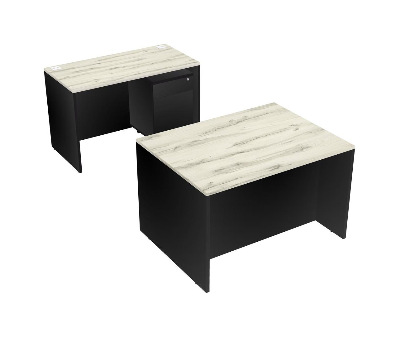 Office Parallel Desk Credenza Desk + Wooden Mobile Drawers