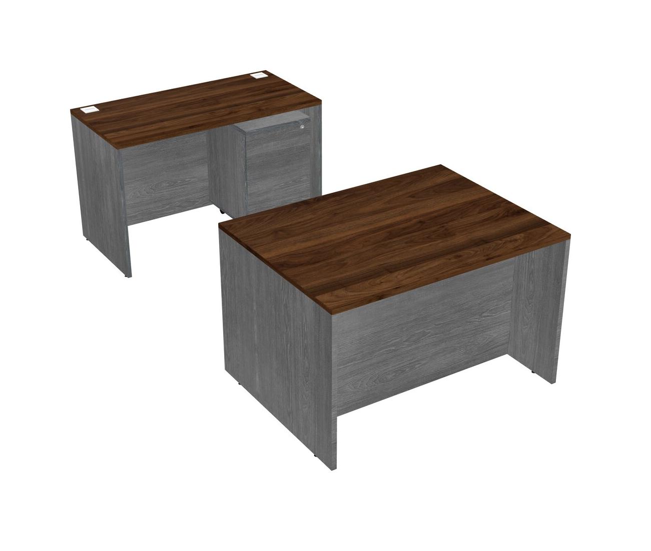 Office Parallel Desk Credenza Desk + Wooden Mobile Drawers
