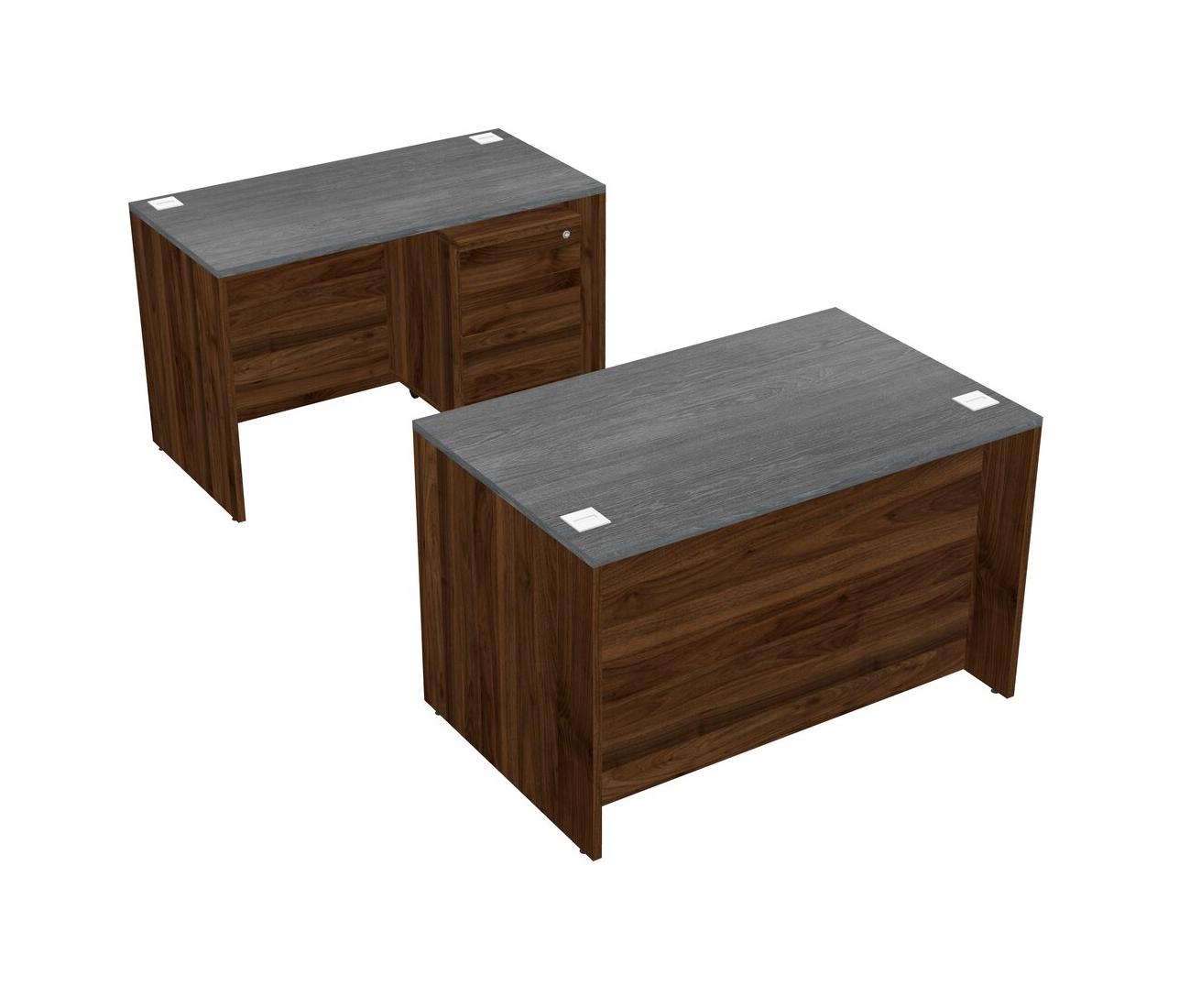 Office Parallel Desk Credenza Desk + Wooden Mobile Drawers