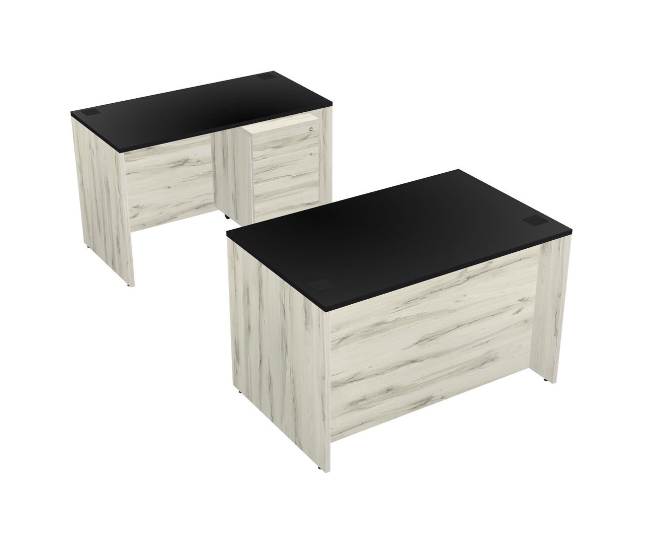 Office Parallel Desk Credenza Desk + Wooden Mobile Drawers