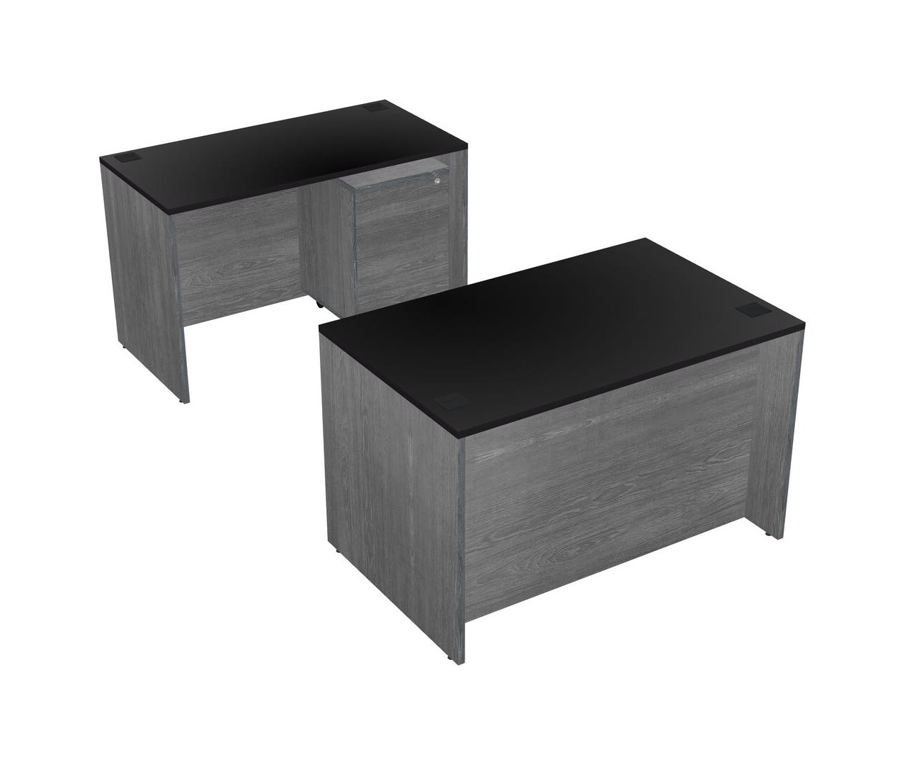 Office Parallel Desk Credenza Desk + Wooden Mobile Drawers