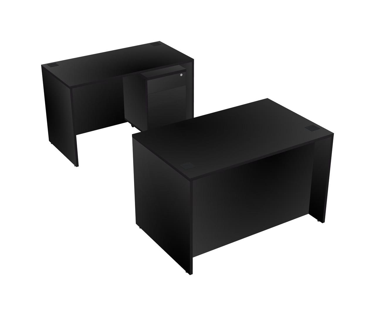 Office Parallel Desk Credenza Desk + Wooden Mobile Drawers