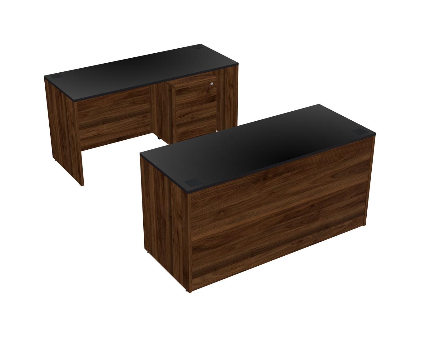 Office Parallel Desk Credenza Desk + Wooden Mobile Drawers