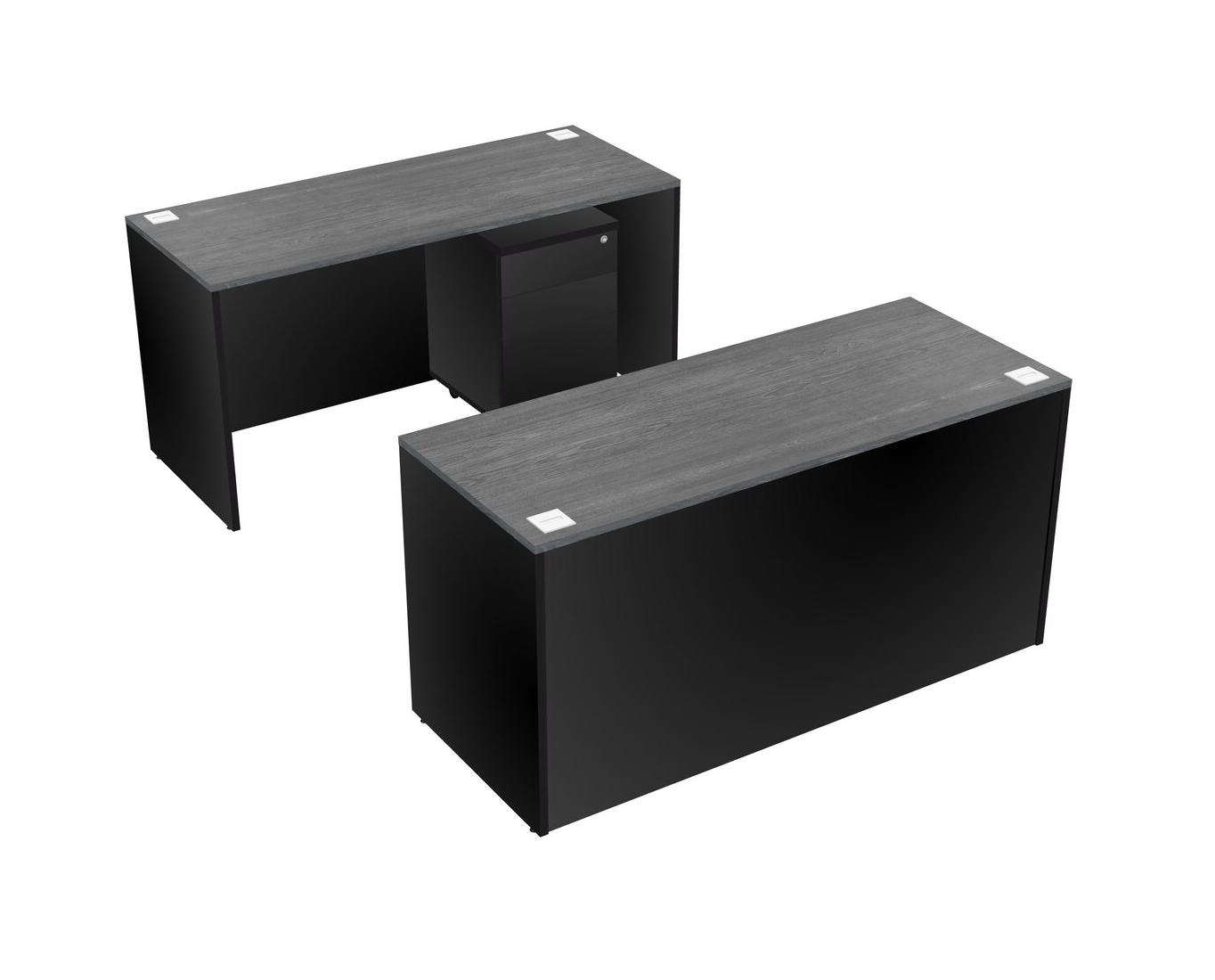 Office Parallel Desk Credenza Desk + Wooden Mobile Drawers