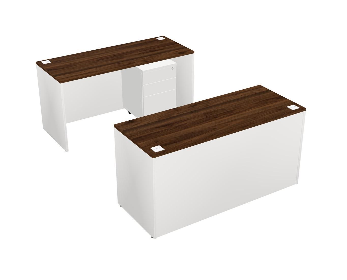 Office Parallel Desk Credenza Desk + Wooden Mobile Drawers