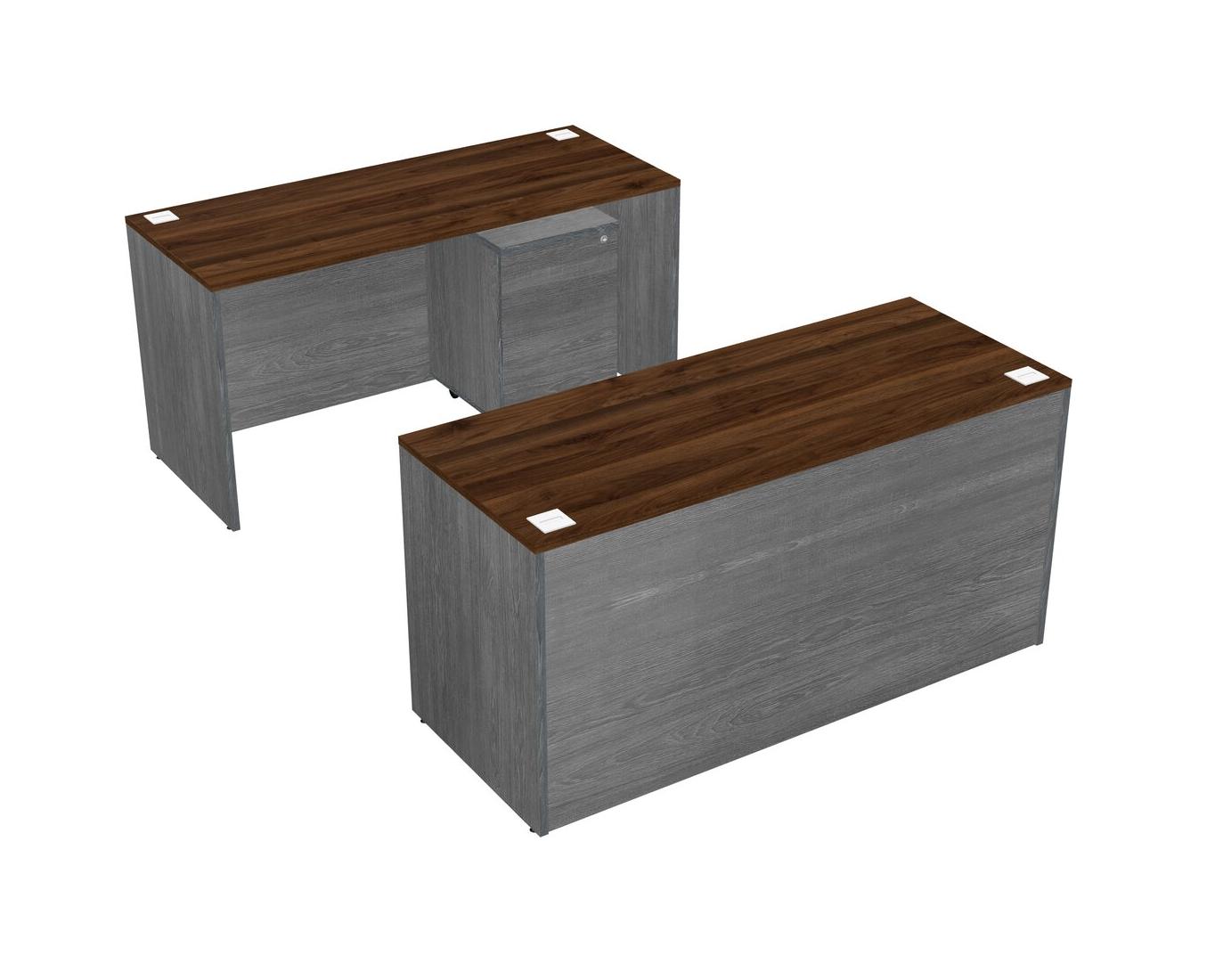 Office Parallel Desk Credenza Desk + Wooden Mobile Drawers
