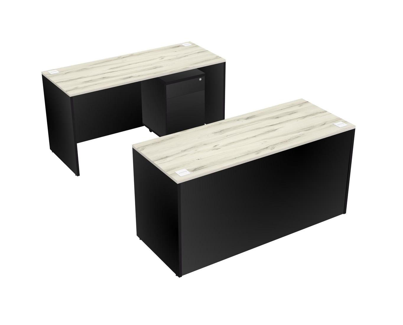 Office Parallel Desk Credenza Desk + Wooden Mobile Drawers