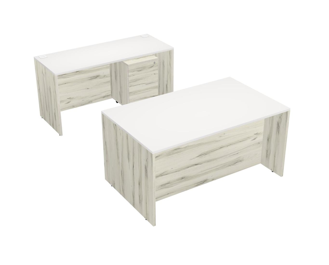 Office Parallel Desk Credenza Desk + Wooden Mobile Drawers