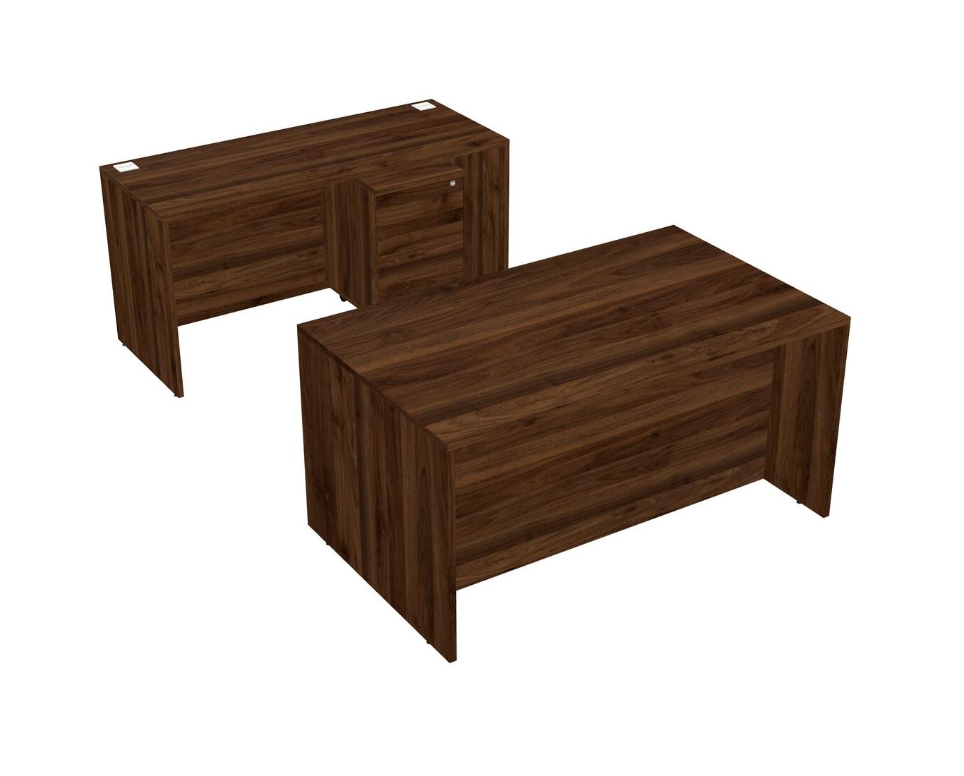 Office Parallel Desk Credenza Desk + Wooden Mobile Drawers