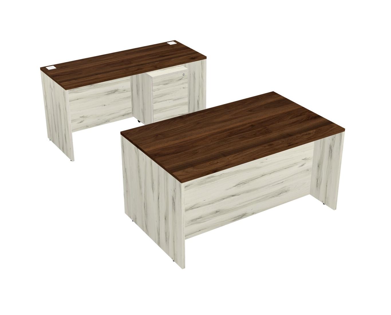 Office Parallel Desk Credenza Desk + Wooden Mobile Drawers