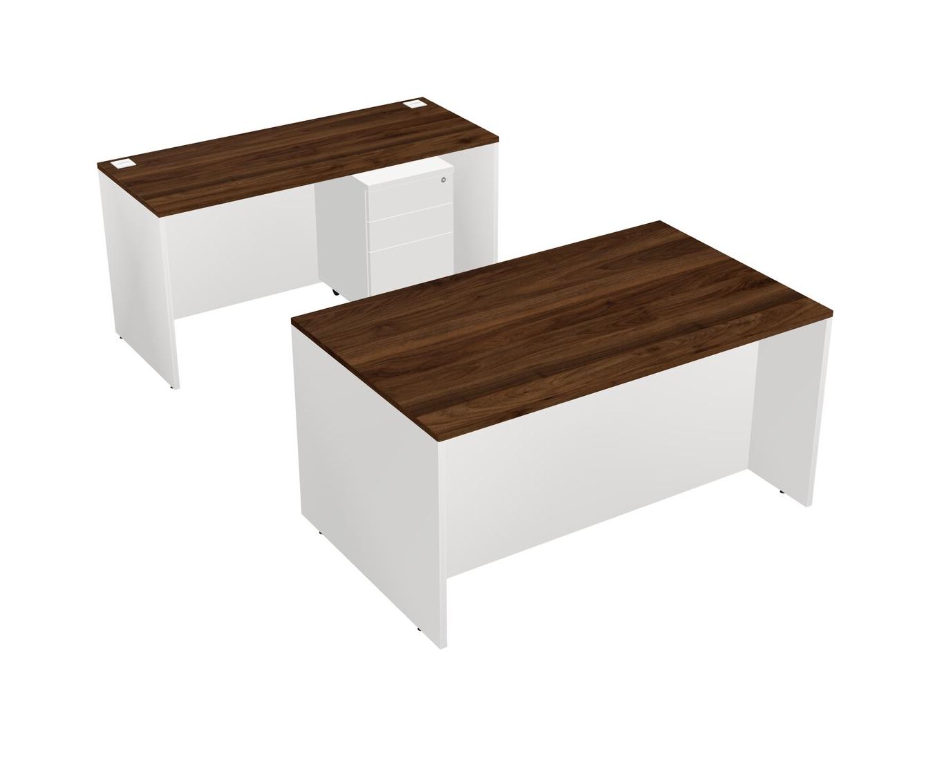 Office Parallel Desk Credenza Desk + Wooden Mobile Drawers