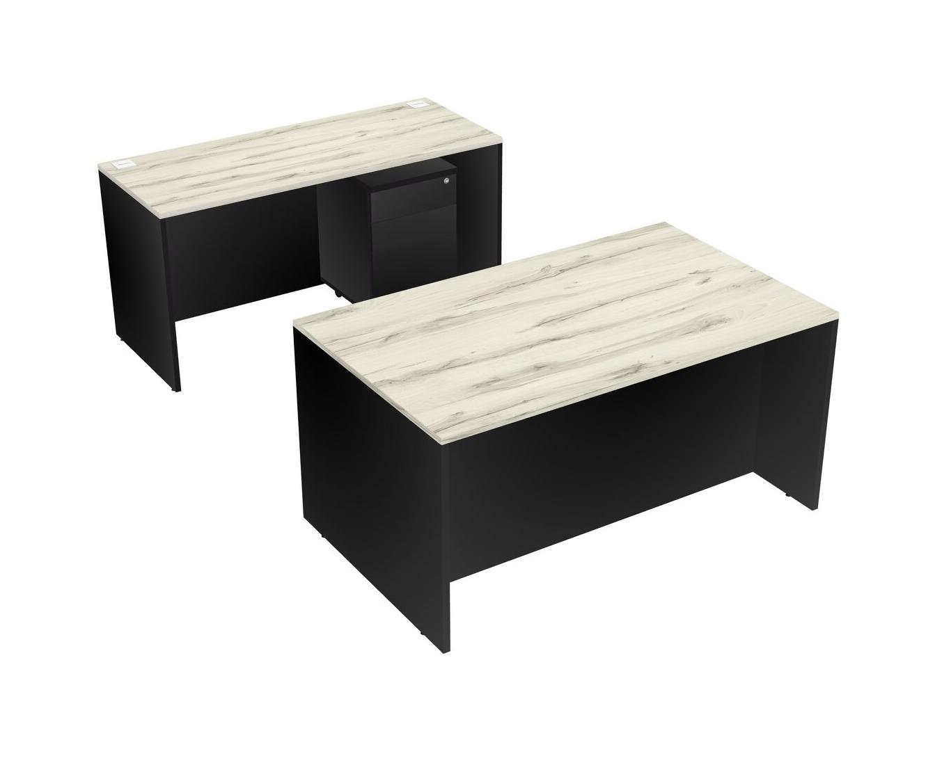 Office Parallel Desk Credenza Desk + Wooden Mobile Drawers