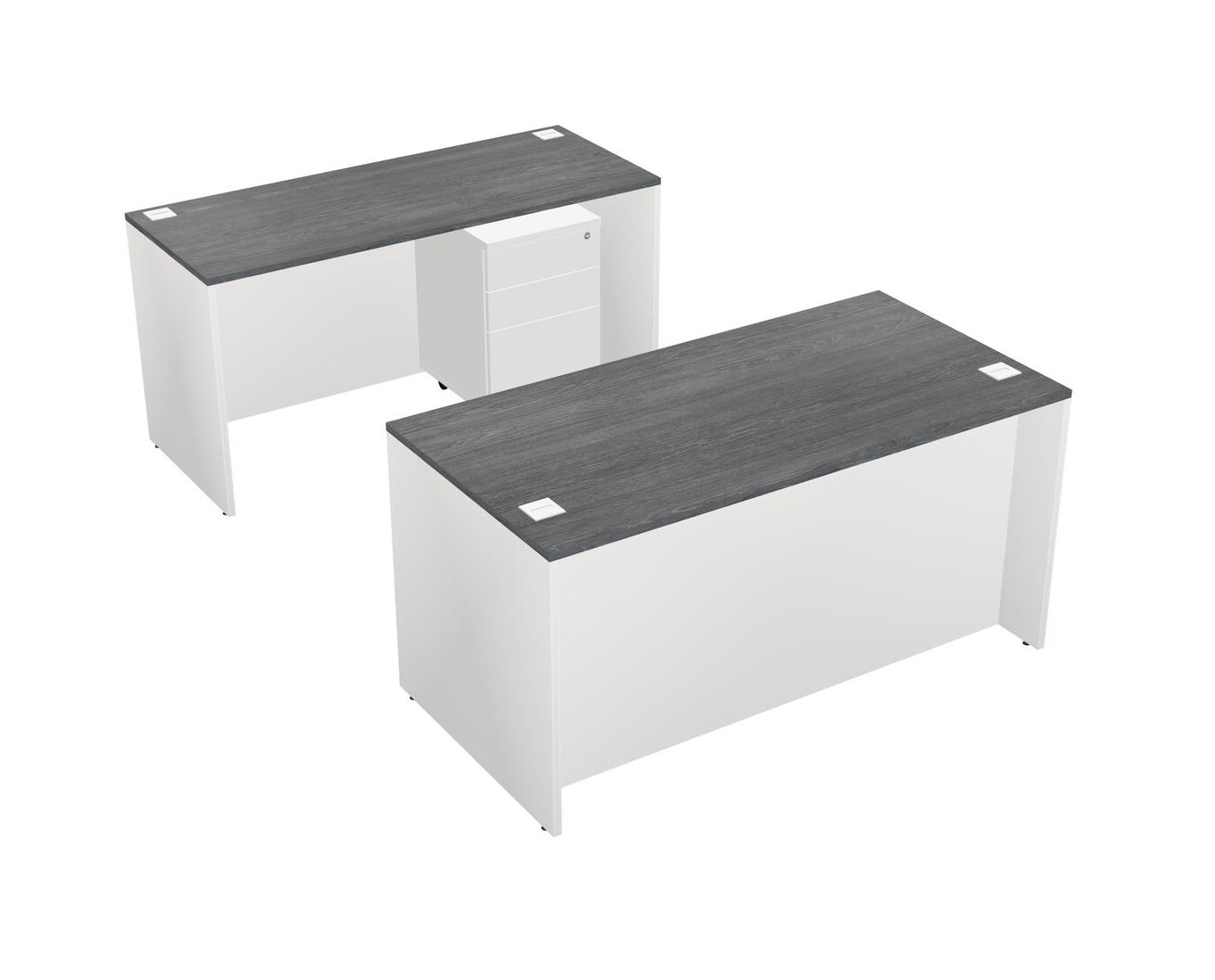 Office Parallel Desk Credenza Desk + Wooden Mobile Drawers